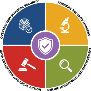 Each feature serves a unique purpose. Covert or invisible markings enable trained inspectors to quickly authenticate genuine products in the supply chain, identify the source of diversion, or determine other illicit activities. Overt features allow the end consumer to verify the authenticity of their purchased product. When combined with careful design and production quality controls in authentic product manufacturing, these features raise the bar of complexity for counterfeiters and make the product a less attractive target.